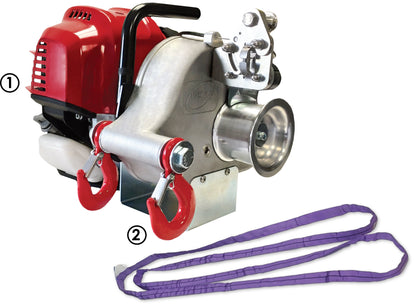 Ce modèle est propulsé par le moteur Honda GX50 à 4 temps inclinable à 360° pour offrir une performance fiable et sans accrocs en plus d'une remarquable puissance de tire de 1,000 kg (2,200 lb). Ajoutez un système de deux poulies doubles et vous obtiendrez jusqu'à cinq (5x) la capacité du treuil, soit un total de 5,000 kg (11,000 lb)!