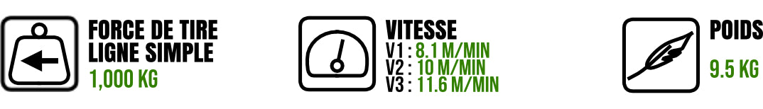 - 2.5 m (8 ¼ pi) élingue ronde en polyester pour ancrer le treuil là où vous le souhaitez !